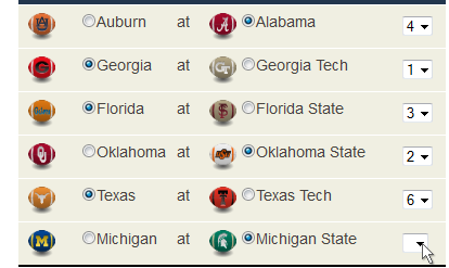 must pick one team among those playing that you think will win its game. You can